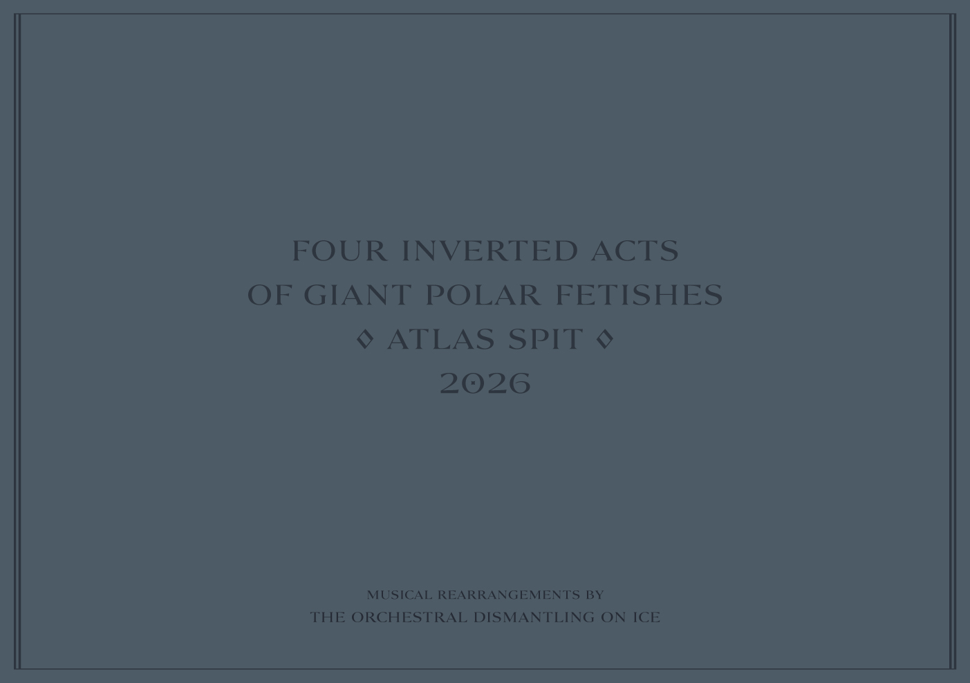 Two very large fishing vessels ice sculptures placed at the center of an exhibition space will self-mutilate. Sculpted first, deformed later, their singularity and resemblance will gradually dissuade as they melt. In this process of disfiguration one wonders at what point these monumental vessels cease to be individuals and become a single body of water inundating the space. I consider Atlas Spit an exaggeration, an almost morbid and unsettling sight view in which the fetishism for the destruction of human inventions becomes evident, magnified, exaggerated.