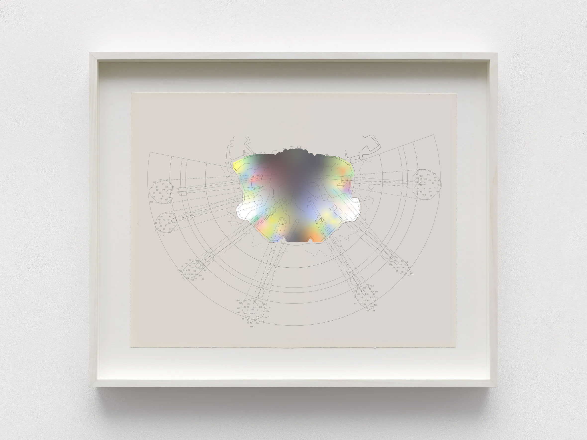 2022 Drawing Tidal Transmission Holographic adhesive, semi-transparent piezography direct on plate, graphite ink multi-screenprint on natural Legion Stonehenge.