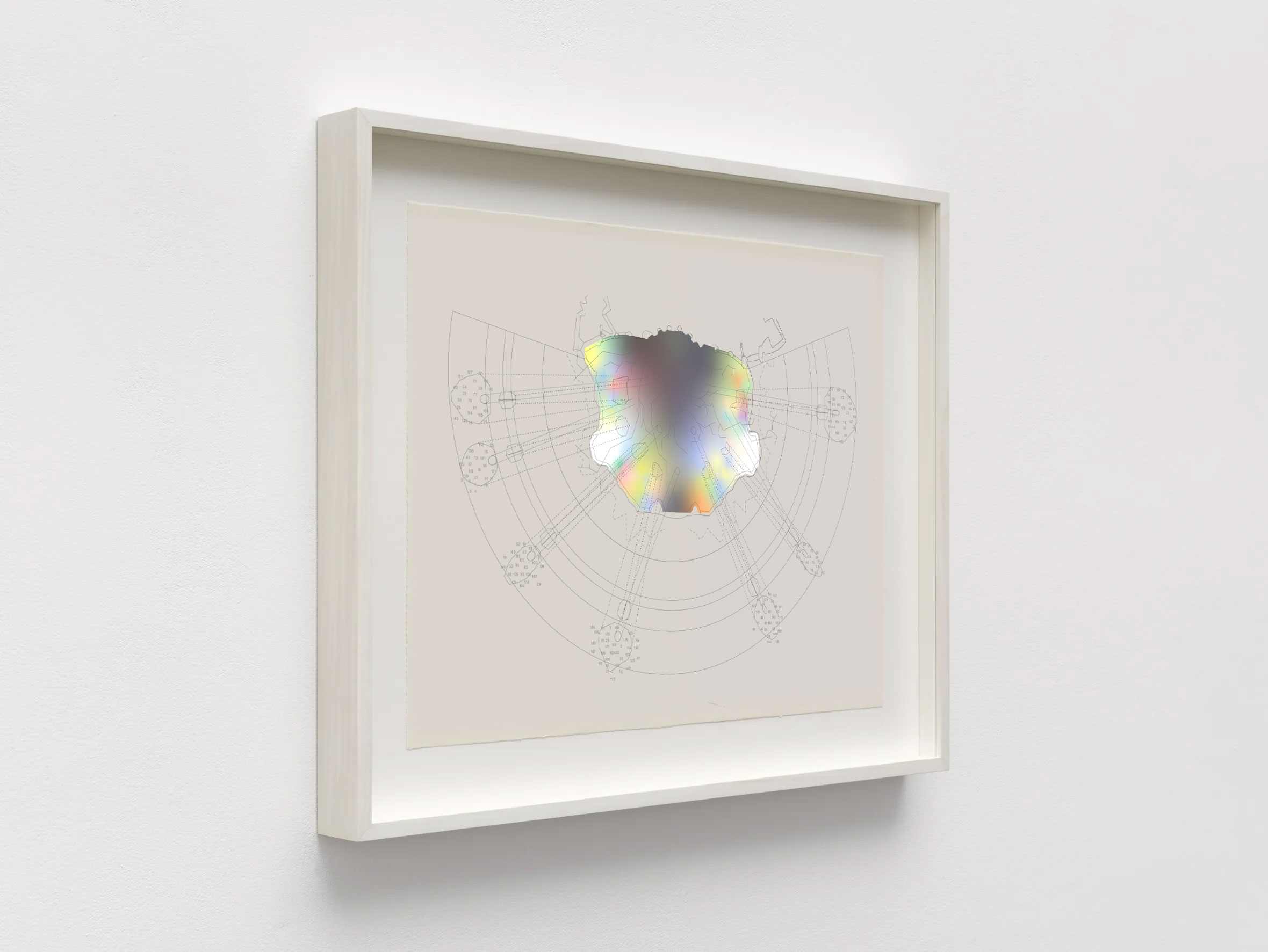 - Holographic adhesive, semi-transparent piezography direct on plate, graphite ink multi-screenprint on natural Legion Stonehenge.